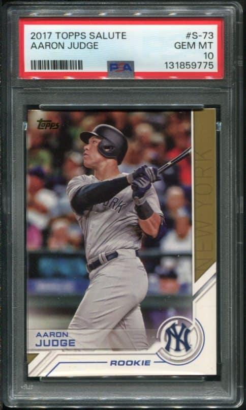 Aaron Judge’s 2017 Topps Salute #S-73 Rookie baseball card with a GEM MINT PSA 10 grade – Recently Graded & comes in a new PSA holder!